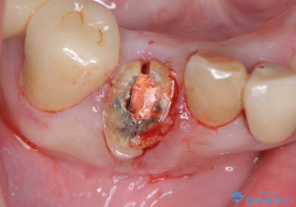 X線写真および歯周組織検査より、歯の破折 周囲骨の高度な吸収が認められました。