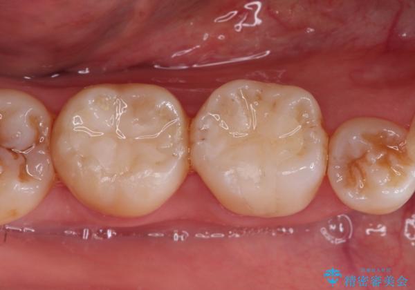 e-max プレスインレーにて修復治療を行っているため適合性及び審美性の高い治療を行うことができます