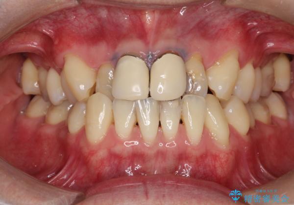 また、金属で治療された根本の歯茎が黒く変色(メタルタトゥー)しており、余計に見た目がよくない状態となっておりました。