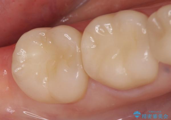 右下7は冷たいものがしみていたため、銀歯を除去後、オールセラミッククラウンによる補綴を行いました。