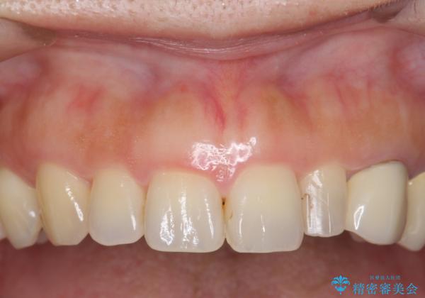 - 左上の前歯が小さく左右対称ではないのと、保険の前歯の被せ物のやりかえを希望して来院。