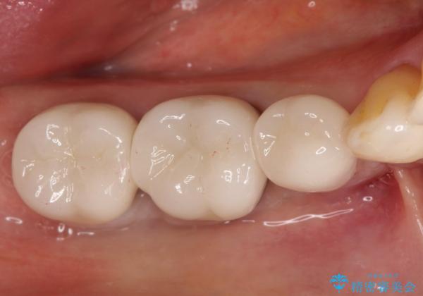 - 他院にて以前治療した修復物の下に虫歯を認めたため、オールセラミックにて修復治療を行なっております。