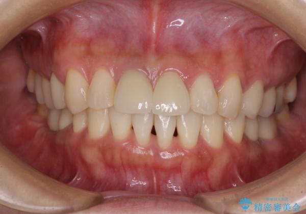 治療途中より、上の歯や反対側の銀歯、上顎前歯の色合いや下顎前歯のデコボコが気になってきたため、全てを治療することとしました。
