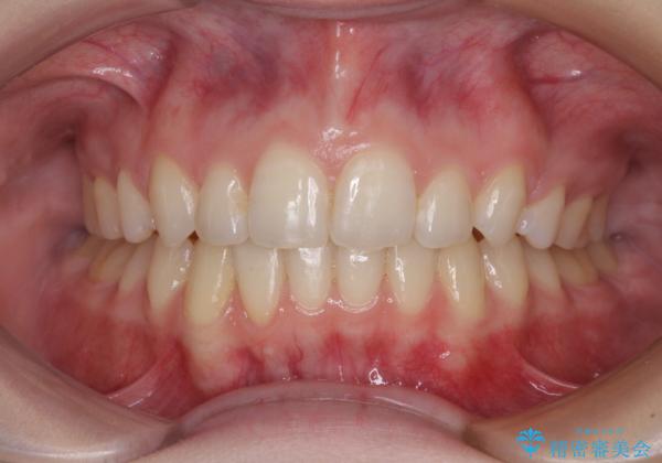 下顎の骨格的なズレが大きかったため、上下歯列のバランスが取れるか心配でしたが、上下ともに左右対称に近い歯列で治療を終えることができました。