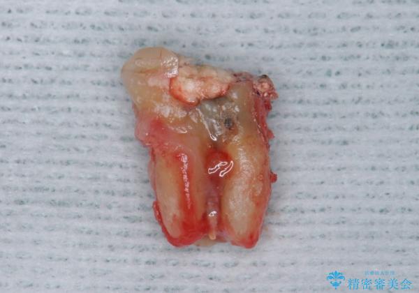 精査したところ、左下の奥歯にはひびが入っていて、保存不可能な状態でした。