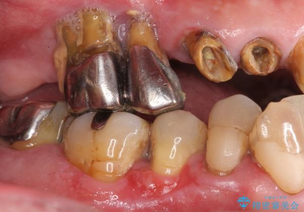全顎的な歯周病治療を行ったのち、上顎洞底挙上術(上顎骨に骨を増やす手術)を併用したインプラント埋入を行いました。