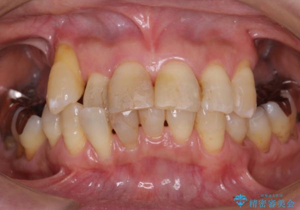- 上の奥歯がないまま長年過ごしていたら前歯もぐらぐらしてきてしまったことを主訴に来院された患者様です。