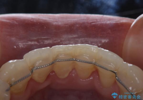 - 以前、他院で矯正治療をしていて、まだ保定装置をつけたままとのこと。保定装置の周りが磨きにくく歯石が溜まってきたためクリーニングを受けたいとのことでした。PMTC60分コースを行いました。