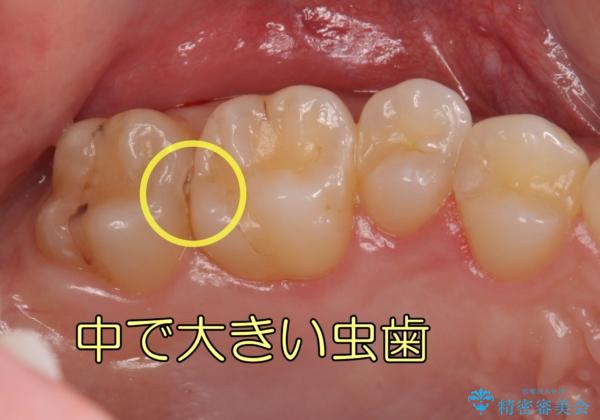 全体矯正をする前の虫歯チェックで見つかった虫歯です。