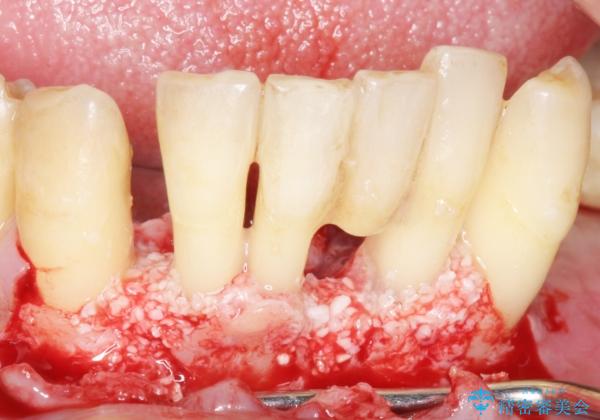 できるだけ自分の歯を残したいという患者様の強いご希望により、禁煙指導後再生療法(骨を増やす手術))を行いました。