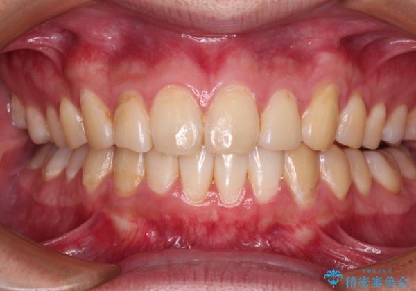 しかし、費用面や期間で悩んでいらっしゃったため、左側臼歯の問題は解決せずに前歯のデコボコのみを改善するシミュレーションを作成し、治療を行うこととしました。