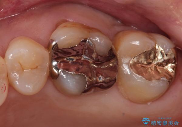 適合の良い修復を希望されましたので、プラチナゴールドインレーにて治療を行っております。