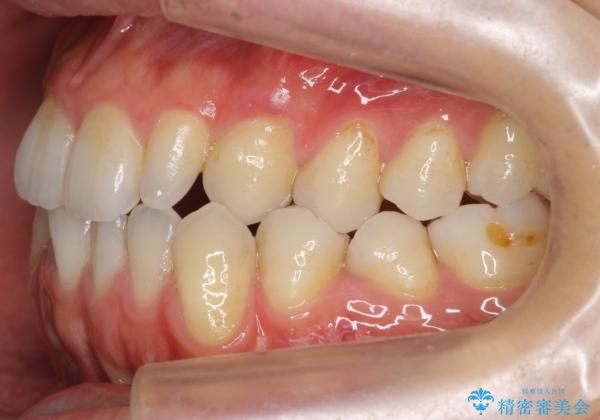 今回は下の前歯を1本抜くことで、下の奥歯をしっかり内側に傾けて治療を行いました。