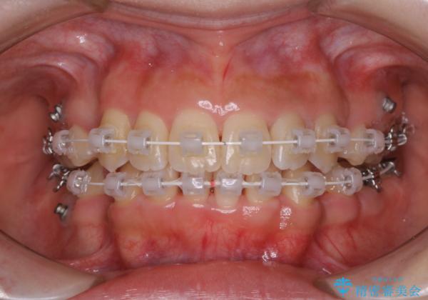着色だけではなく、歯石やプラークがたくさん付いており、汚れを落としたことにより正常な隙間が見えてきました。これを放置しておくと、歯周病や虫歯が進行してしまいます。ワイヤー矯正中はとてもホームケアが大変になるため1,2ヶ月のペースでのクリーニングをおすすめしています。
