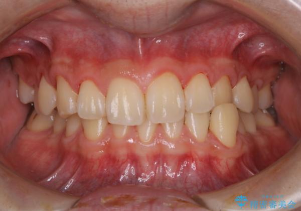 人生で初めてのクリーニングということもあり、プラークや歯石が大量に付いていました。それにより、歯茎の腫れもあり出血も多かったです。これから矯正をスタートしていくため、歯ブラシ指導を行いホームケアを頑張ってもらっています。