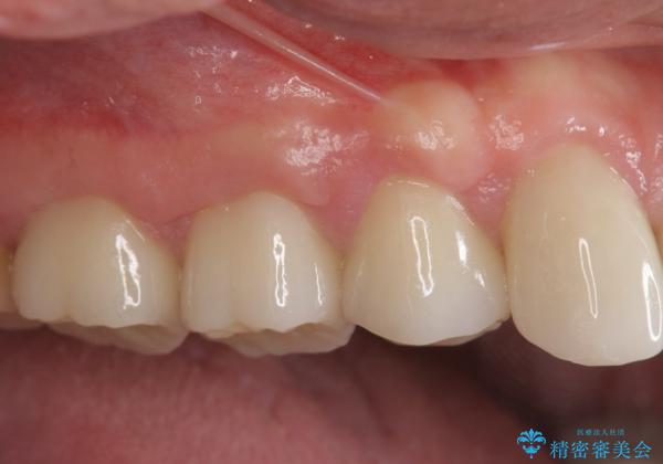 高さが短くなってしまった歯は、安定したクラウンを作るのが難しいため歯ぐきを下げる歯周外科を行ったのちに強度に優れるフルジルコニアクラウンで補綴治療を行います。