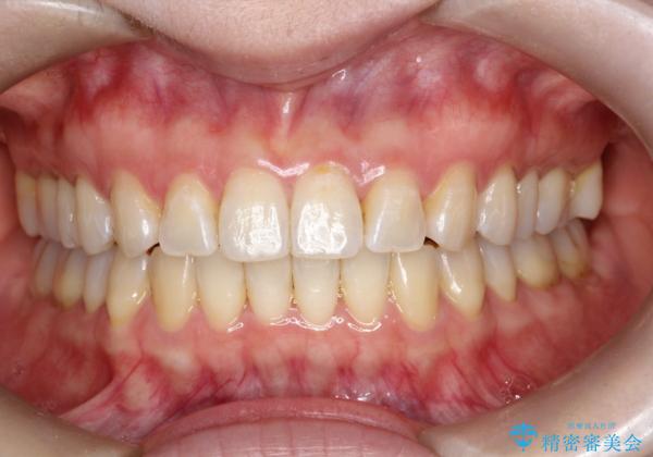 前歯のガタガタの量が多かったため、IPR(歯のサイズを小さくするための処置)を行なって治療しました。