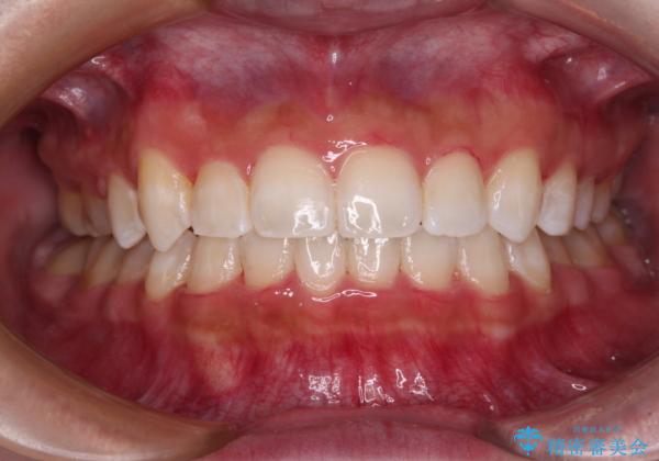 前から5番目の乳歯は、後続永久歯である小臼歯と比べて幅径が大きいため、移動に時間がかかりましたが、きれいに仕上げることができました。