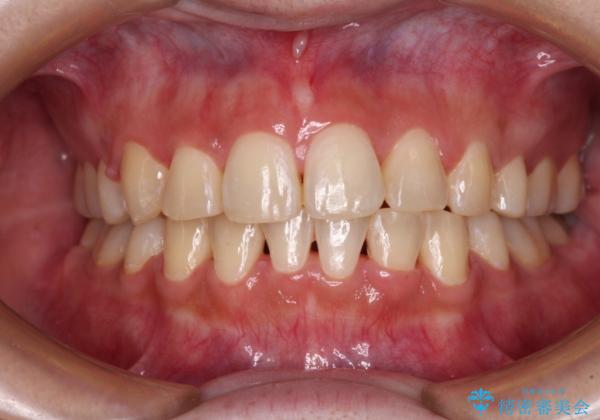 インビザライン単体で治療を行うには叢生が強いと判断されたため、事前にワイヤー装置で抜歯矯正を行い、ある程度改善してからインビザラインにて仕上げていくこととしました。