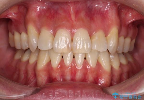 目立たない装置を希望されたので、上顎が裏側装置のハーフリンガルを選択し、上下左右の小臼歯(計4歯)を抜歯して矯正治療を行うこととしました。