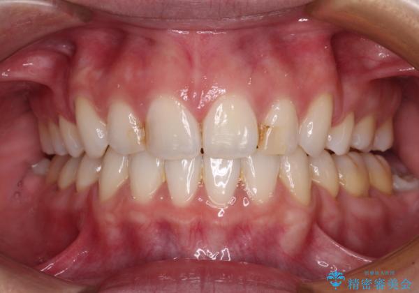 上下左右第一小臼歯4本を抜歯して、積極的に口元を引っ込めるよう、ワイヤー装置にて矯正治療を行うこととしました。