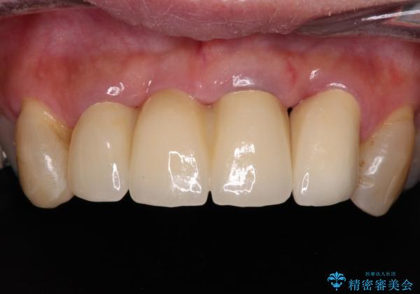 また、前歯に抜歯が必要な歯があったため、抜歯をし、傷の治りを待ってオールセラミックブリッジにて補綴治療を行うこととしました。