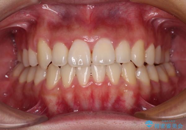 上顎歯列が狭窄していたため、急速拡大装置により上顎骨を側方に拡大し、その後ワイヤー装置にて矯正治療を行うこととしました。