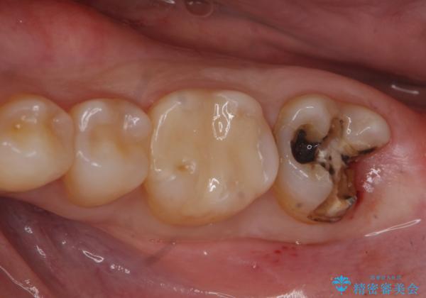 白い物で治療して欲しいとのことで、セラミックの詰め物だと詰め物の範囲が大きく、割れてしまう可能性があるので