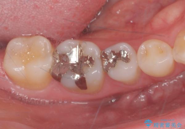銀の詰め物を外し、拡大鏡で虫歯がないか確認してe-maxインレーで治療をしました。