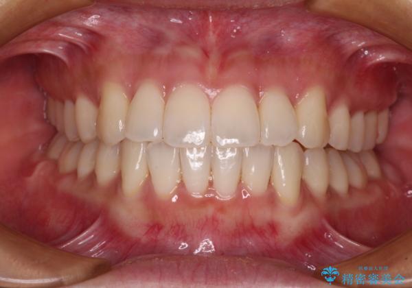 ワイヤー矯正でもマウスピース矯正でも対応可能でしたが、マウスピース矯正の自己管理が面倒であること、上顎前歯の捻転が著しいことから、ワイヤー矯正での治療を希望されました。