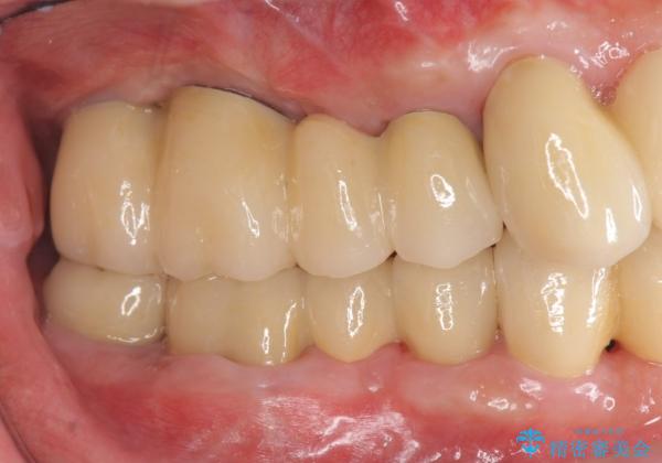 重度に吸収してしまった歯槽骨をしっかりと造成を行ったのちにインプラント治療を行ったので、安定した歯周環境にすることができました。