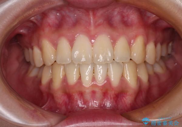 上顎前歯が捻れて前方に飛び出しており、下顎前歯もそれに沿うようにデコボコとなっていました。
